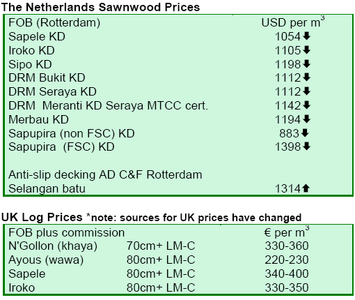 Imports of hardwood rough sawn lumber into the 22 EU countries hit around 825,000 m³ during the first six months of this year, down 12% on the same period in 2007. Of all the main EU markets for tropical rough sawn lumber, only Portugal and Italy maintained imports at a level similar to the previous year. Imports into the Netherlands, France, Belgium and the UK were down respectively 8%, 9%, 27% and 26%.