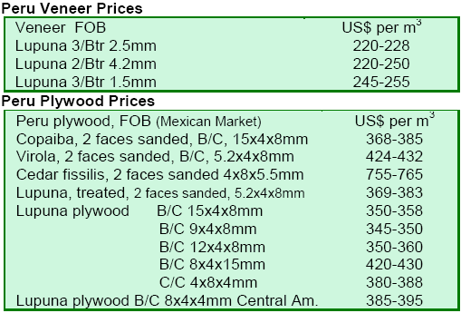 International Plywood and Veneer Prices
