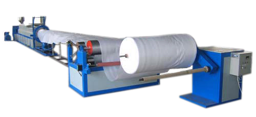 PE foam sheet extrusion line has one extruder with the raw material of polysthene granule .The antishrinking and foam agent are injected under high pressure in the extruding process .The finished products are collected after extruding ,cooling ,shaping ,hauling and winding .The machine adopts inverter and intelligent digital instrument .It features high automation ,advanced structure ,stable performance ,and easy to operate .The products are the popular new flexiable packing in the world .It is used widely in the packing of electrical appliance ,furniture ,pottery , aluminium product ,precise instrument and high quality prodcuts .It is an ideal substitute of traditional packing material .
