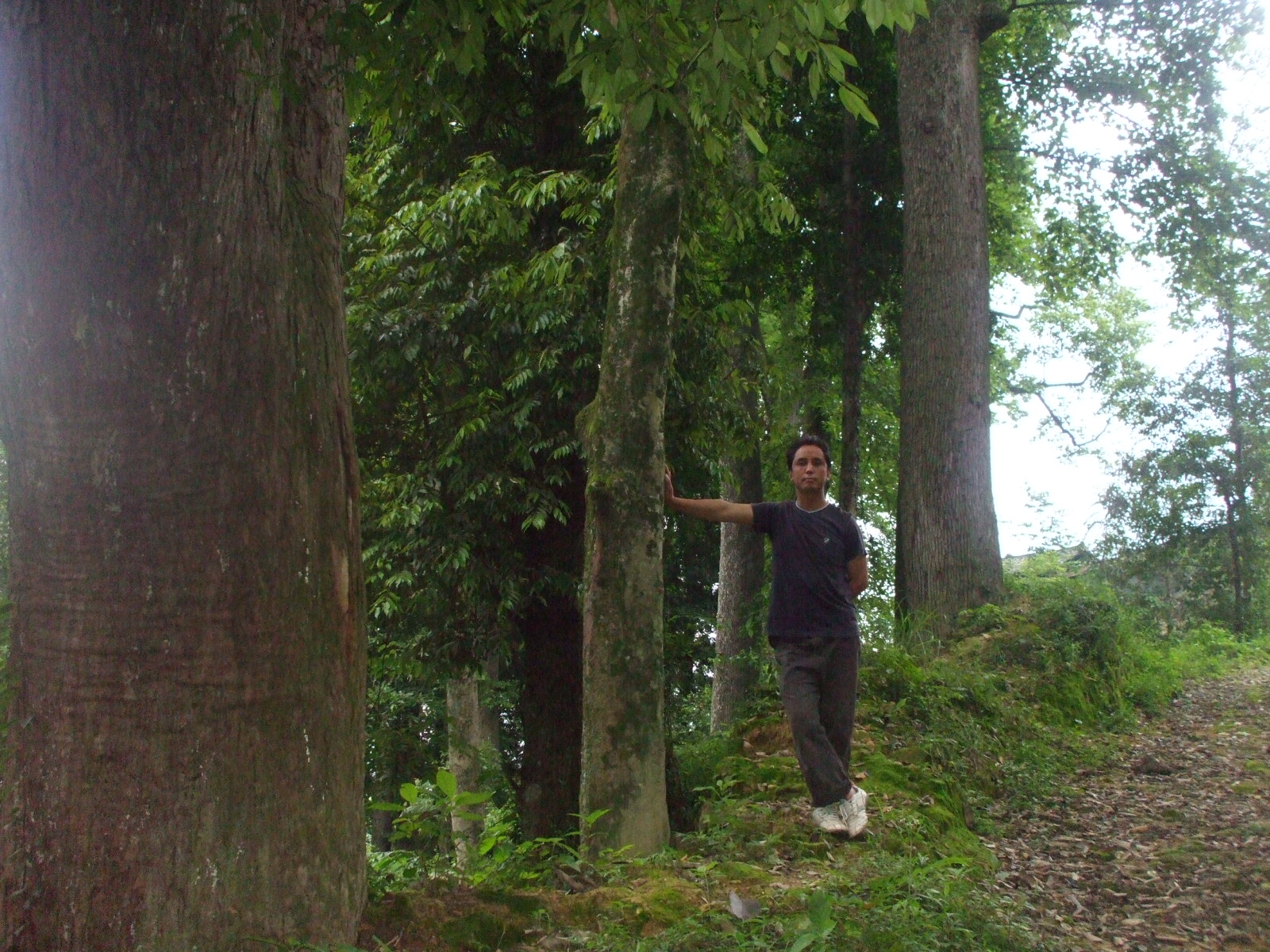 下图人物手所依的是“青叶木”(?)的树干,左边的是“落果木”(华南锥?)的树干。