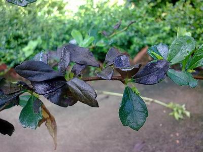 (2)发病规律:以菌丝体在病叶中越冬,次年当气温升至 20℃,相对湿度80%以上时形成孢子,借雨水传播。湿度25— 27℃,高湿条件下最有利于发病。全年以梅雨季节和秋雨季节发生最盛。扦插茶园、台刈茶园,叶片幼嫩,水分含量高,有利于发病。偏施N肥茶园发病也重。