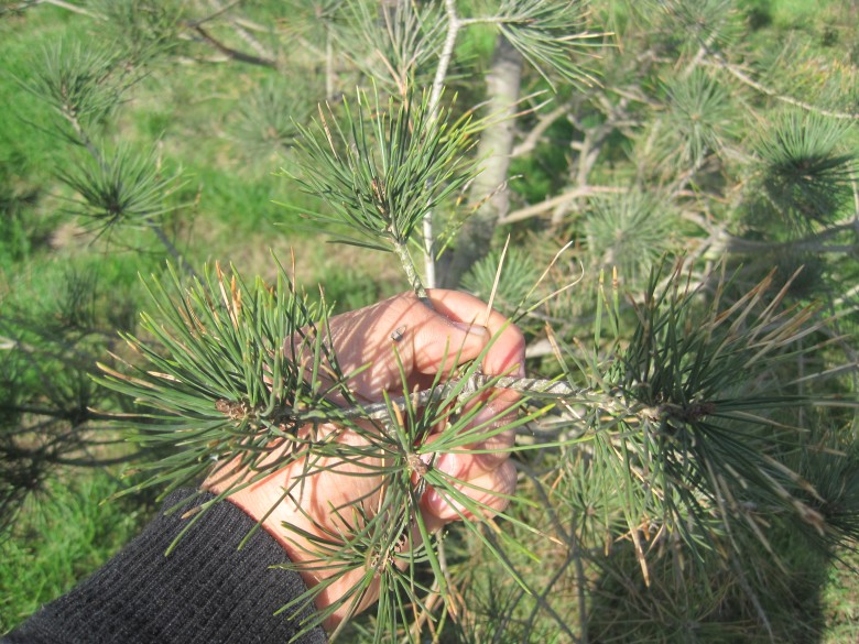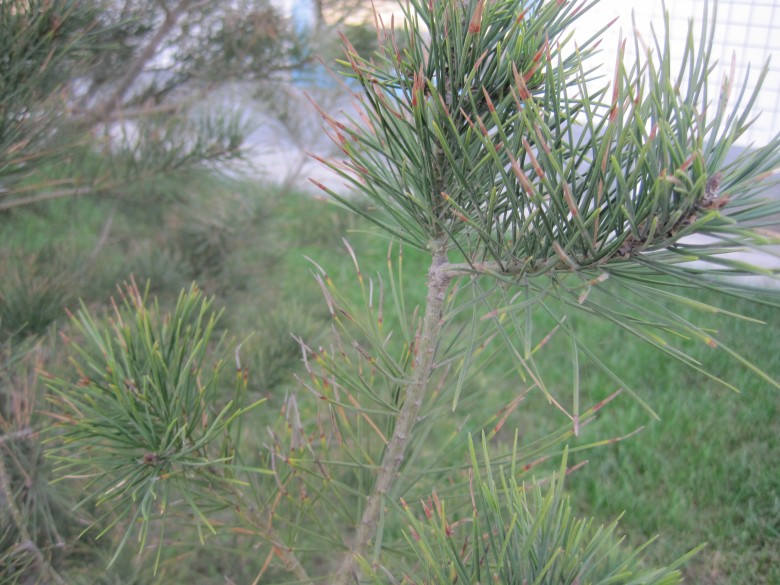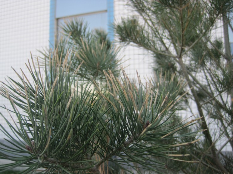 有两种可能:既可能是松针得了病害,也可能是土壤缺铁造成的黄化。