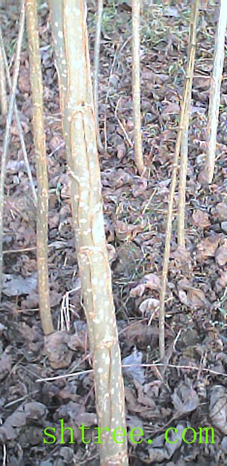 专家您好!谢谢您就上次就“疑似杨树品种”的提醒。此次我从网上找到一幅跟我去年秋天落叶后的树苗相近的图片,图片来源称这是I—69杨,还称主要特点为速生性好,生长快,抗病虫害强。事实上去年我的107苗地遭受了严重的黄粉病害叶子提前落尽,唯有掺杂在其中的这些“大叶杨”没有发病落叶。该苗的特点是叶子特大,树干呈不规则棱形,苗期长势旺盛。但是现在网上的东西多为商业性很强的广告,所以我想请教专家给鉴定一下,我的这些掺杂在107里面的树苗有没有保留的价值?谢谢!