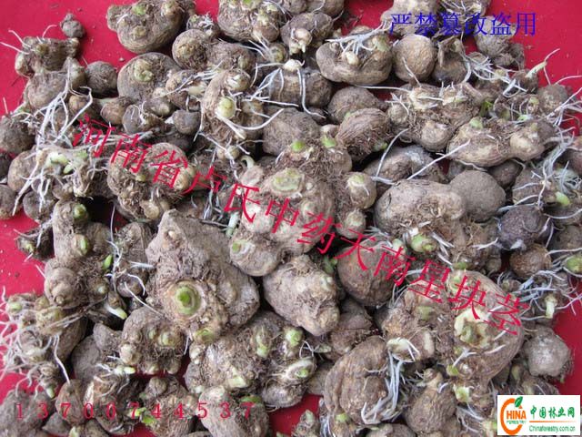 天南星以块茎入药。味苦、辛,性温,有毒。有祛风、化痰、散结、消肿的功能。天南星是一种阴性植物,喜荫,可与果树或玉米等作物套种,不影响粮食产量,当年即可见效。种子种植亩用种10公斤,块茎种植亩用种50公斤左右,当年可收子50公斤左右,鲜块茎1000公斤左右,折干品300公斤左右,现市场成品价25元左右,亩产值也在6000元以上。好种易管见效快,成功率100%。需要欢迎咨询。