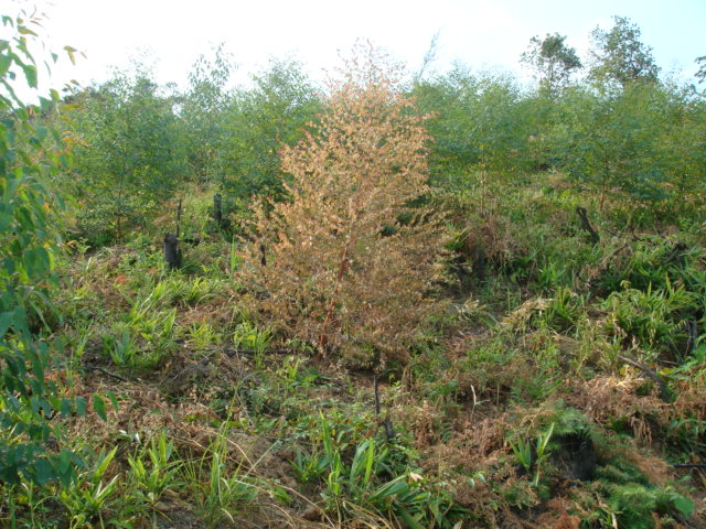 ③发病的林地,应开沟排水,隔离病株,减少地表径流传播病菌。砍伐重病株,清除病根、枯枝,集中销毁处理。病穴用石灰或硫酸铜消毒 。